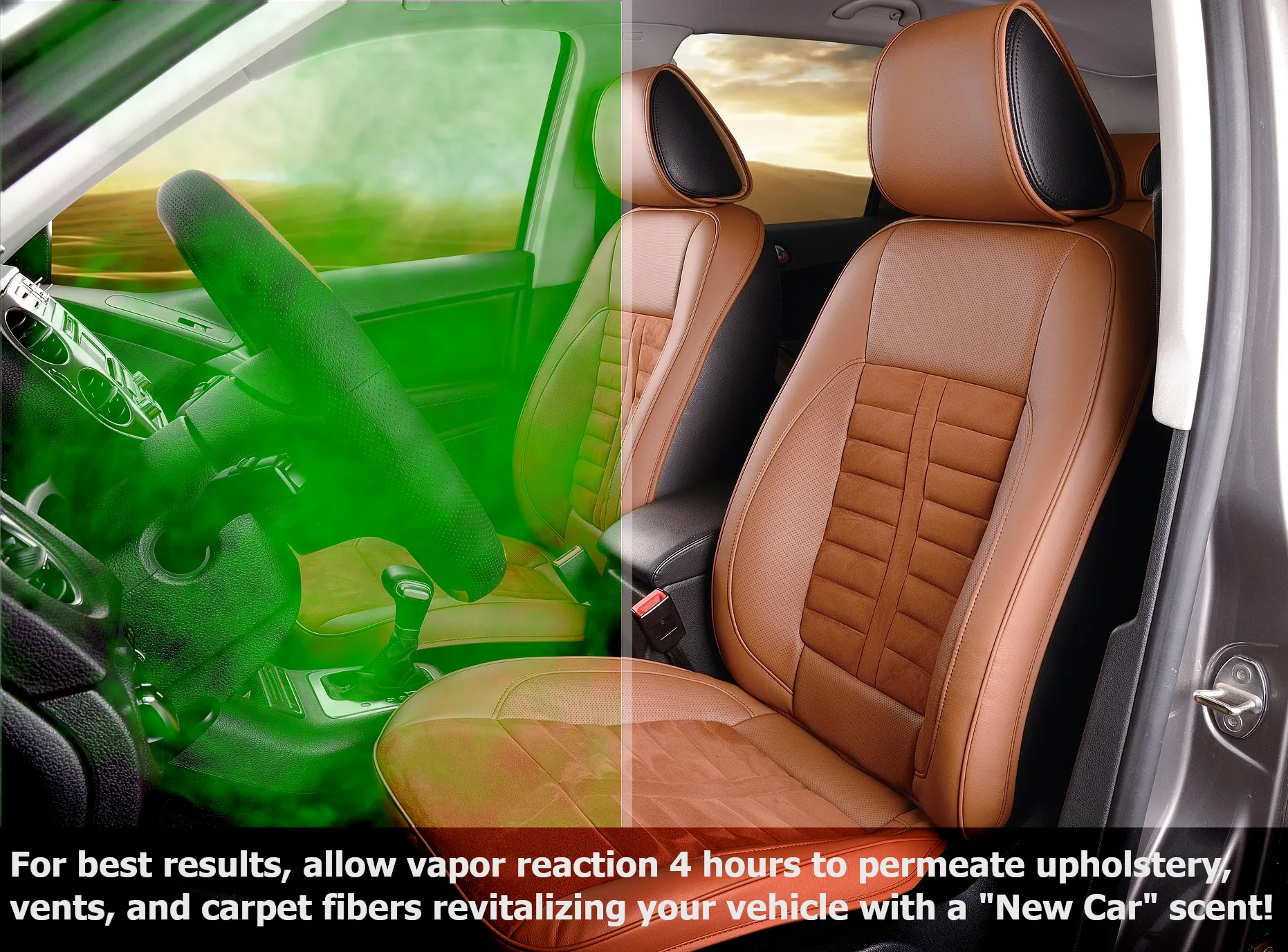 WORKS TO PERMEATE cracks, crevices, upholstery, carpet, and vents in your vehicle. Can reach places where traditional deodorizers cannot.